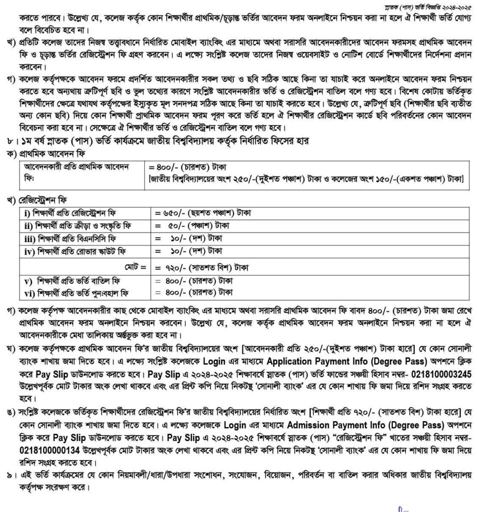NU Degree (Pass) 1st year Admission Circular 2025 Download